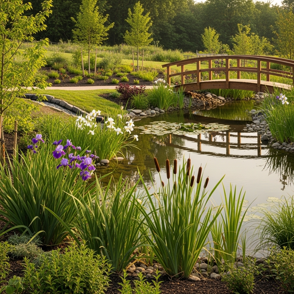 Transform rainwater into a beautiful and functional garden pond. By directing runoff into a lined pond, you can create a water feature that doubles as a natural reservoir. Native aquatic plants and fish can thrive here, making it a self-sustaining ecosystem.