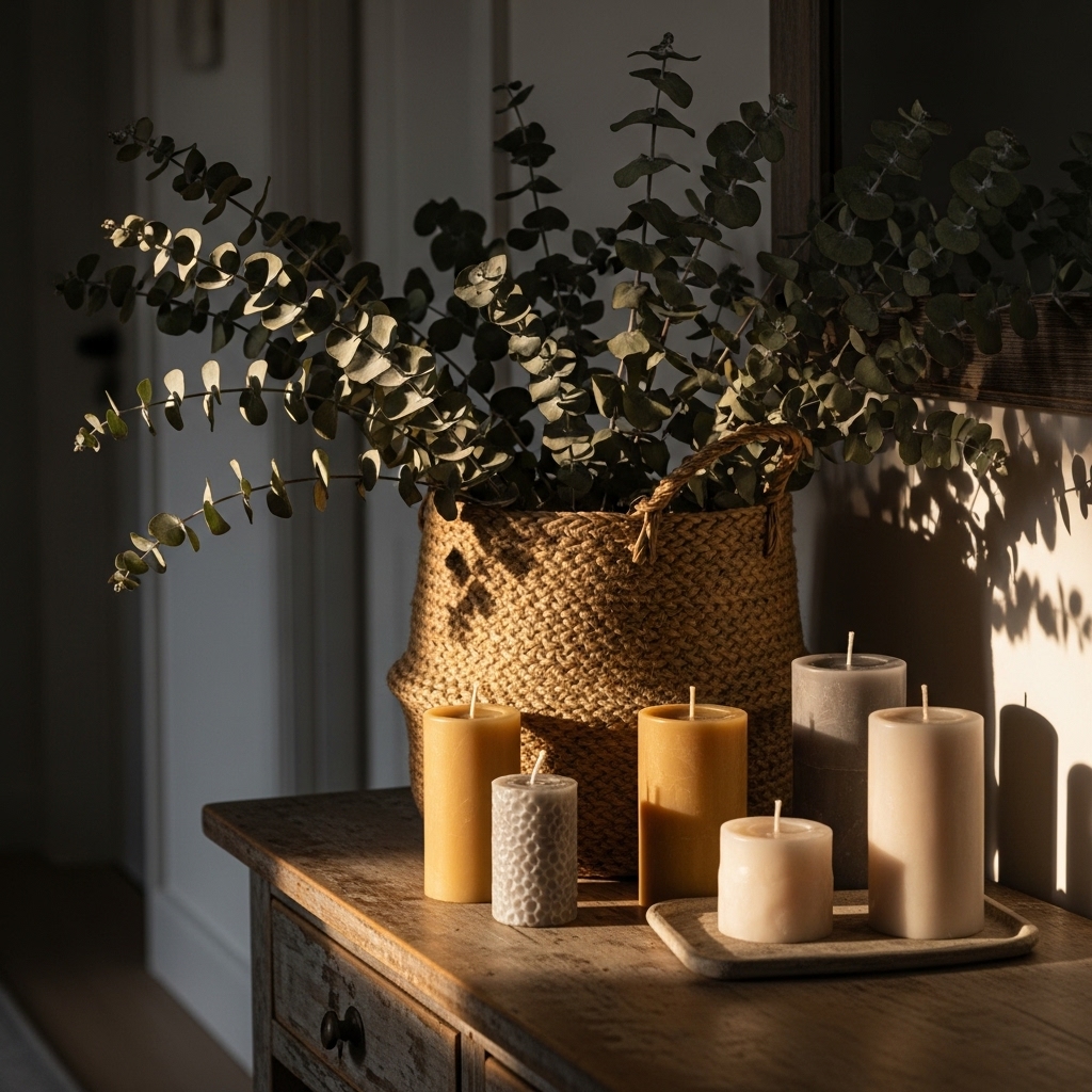 To bring the outdoors in, use real or dried plants, wooden accents, and earthy materials. Decorate with bundles of lavender, wildflowers in glass bottles, and baskets made of seagrass or rattan. These add texture and authenticity.