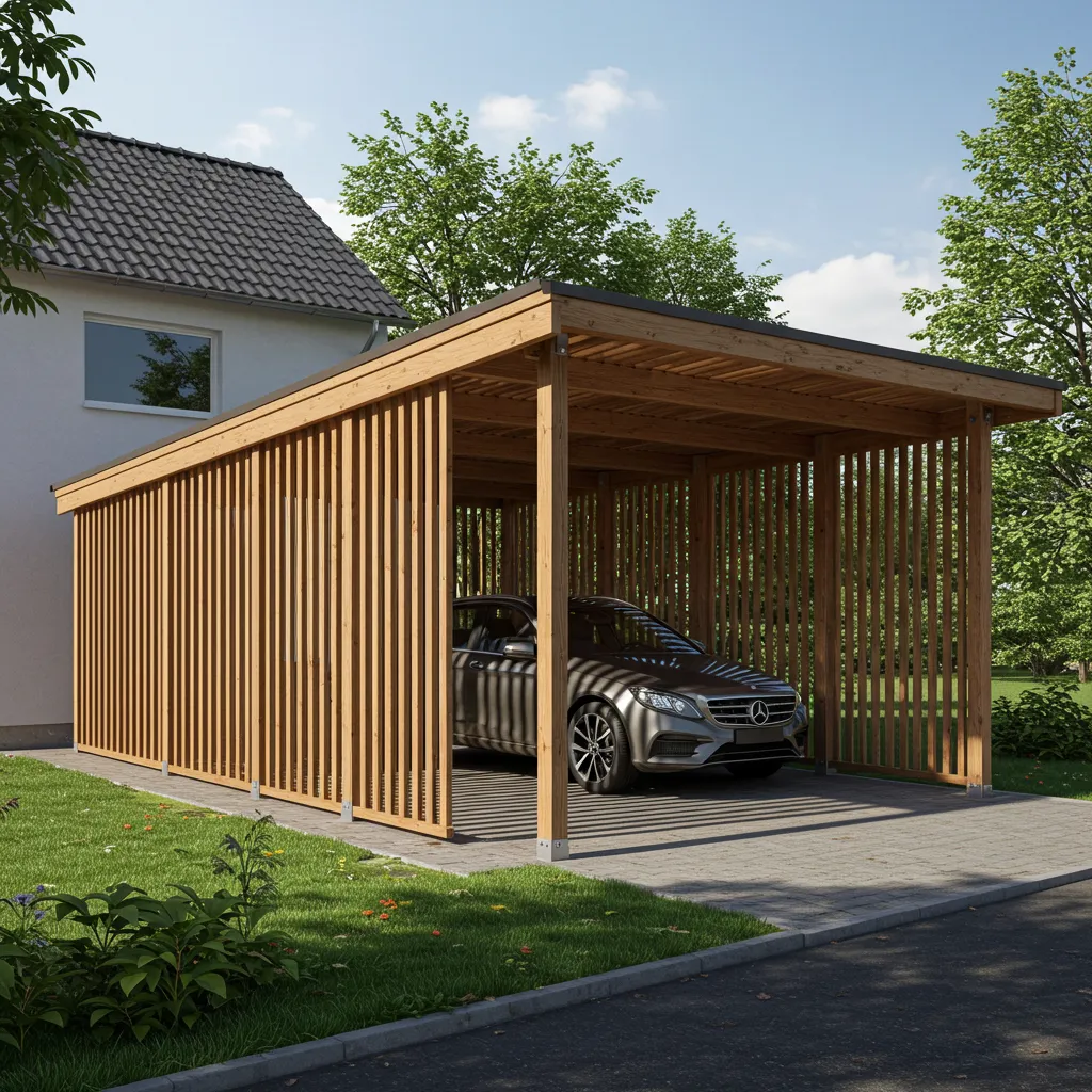 For a stylish alternative, a pergola-style carport with slatted beams can provide shade and partial protection while enhancing the exterior look of your home. It’s not as protective as a solid roof, but with climbing vines or fabric covers, it can be both functional and beautiful.