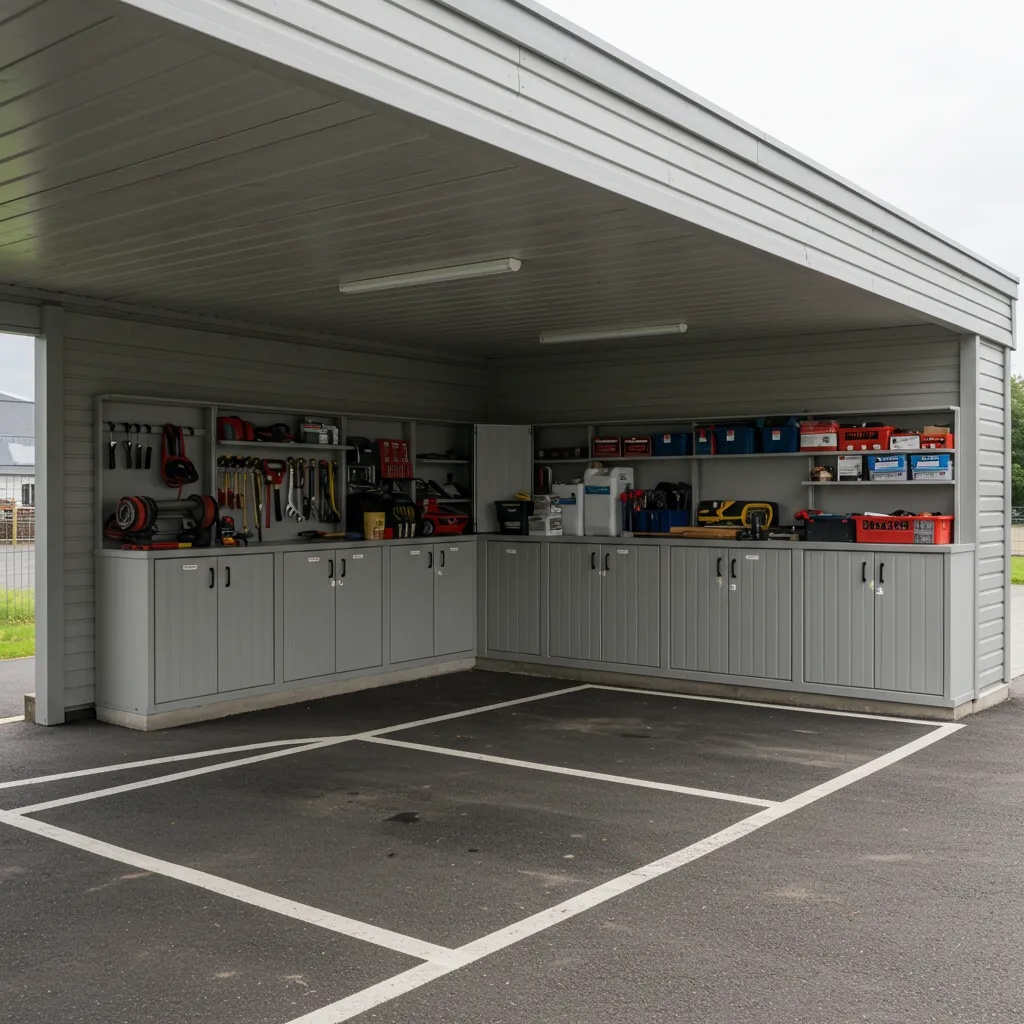 Maximize functionality by incorporating storage into your carport design. Adding built-in cabinets, a small shed section, or overhead racks allows you to store tools, bicycles, or seasonal equipment. This way, your carport doubles as a mini outdoor storage solution.