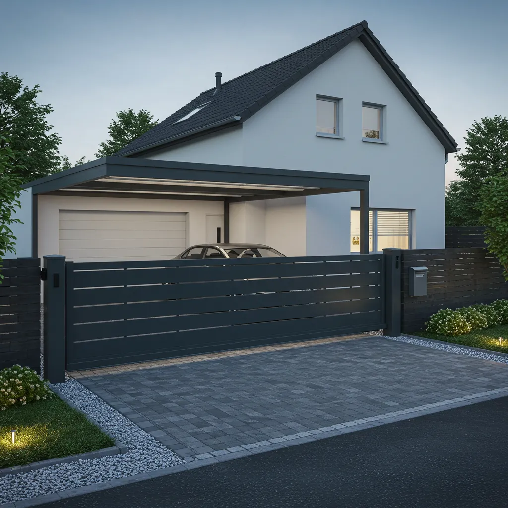 For added security, design your carport to include a driveway gate. This not only keeps your vehicles protected from weather but also secures them from unwanted access. A sliding or swinging gate integrated with the carport creates a strong sense of privacy and safety.