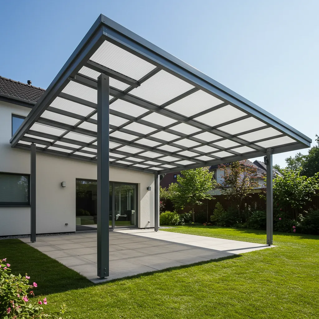 Polycarbonate panels are lightweight, durable, and excellent at blocking harmful UV rays. Installing them on your carport roof offers great light transmission while still keeping vehicles safe from weather damage. This option works especially well if you want a semi-transparent cover that doesn’t feel heavy or dark.