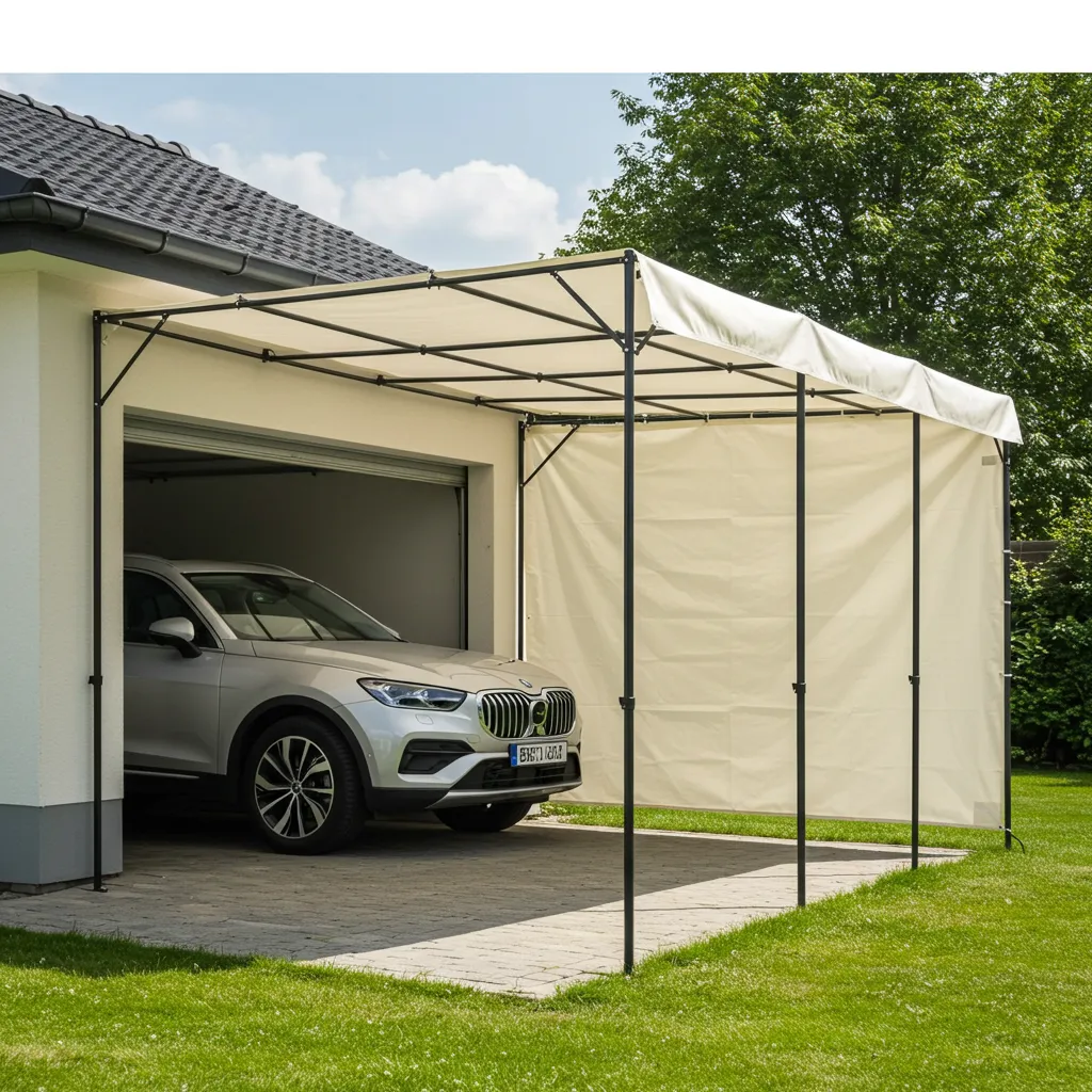 If you prefer flexibility, consider a freestanding carport. This structure stands independently and can be placed directly in front of your garage doors. It works well if your driveway is long and you want extra protection without altering your garage design.