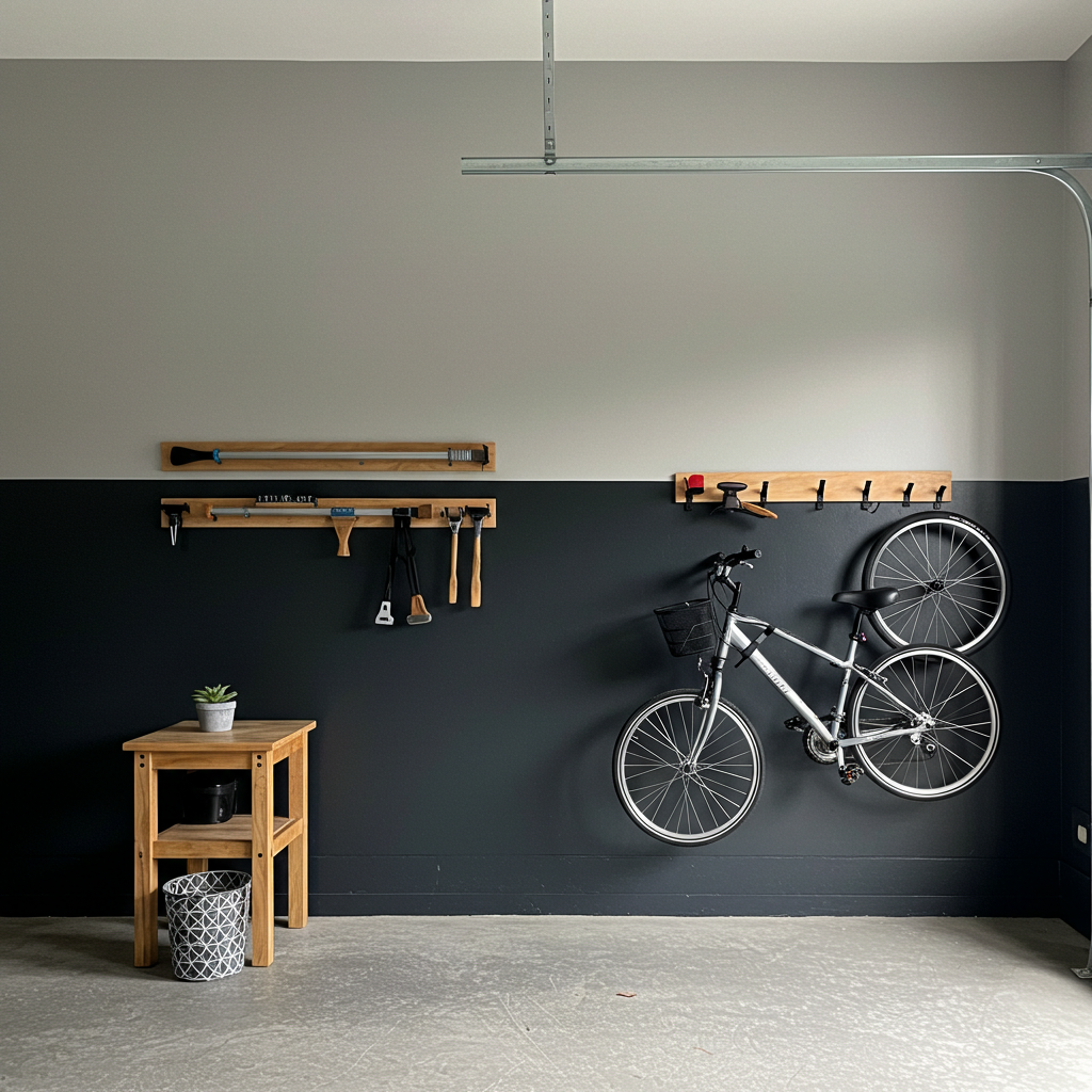Instead of painting the entire garage, focus on the wall that houses the garage door. Use a bold colour like navy, red, or charcoal to draw attention and frame the space. It adds personality without overpowering the whole room.