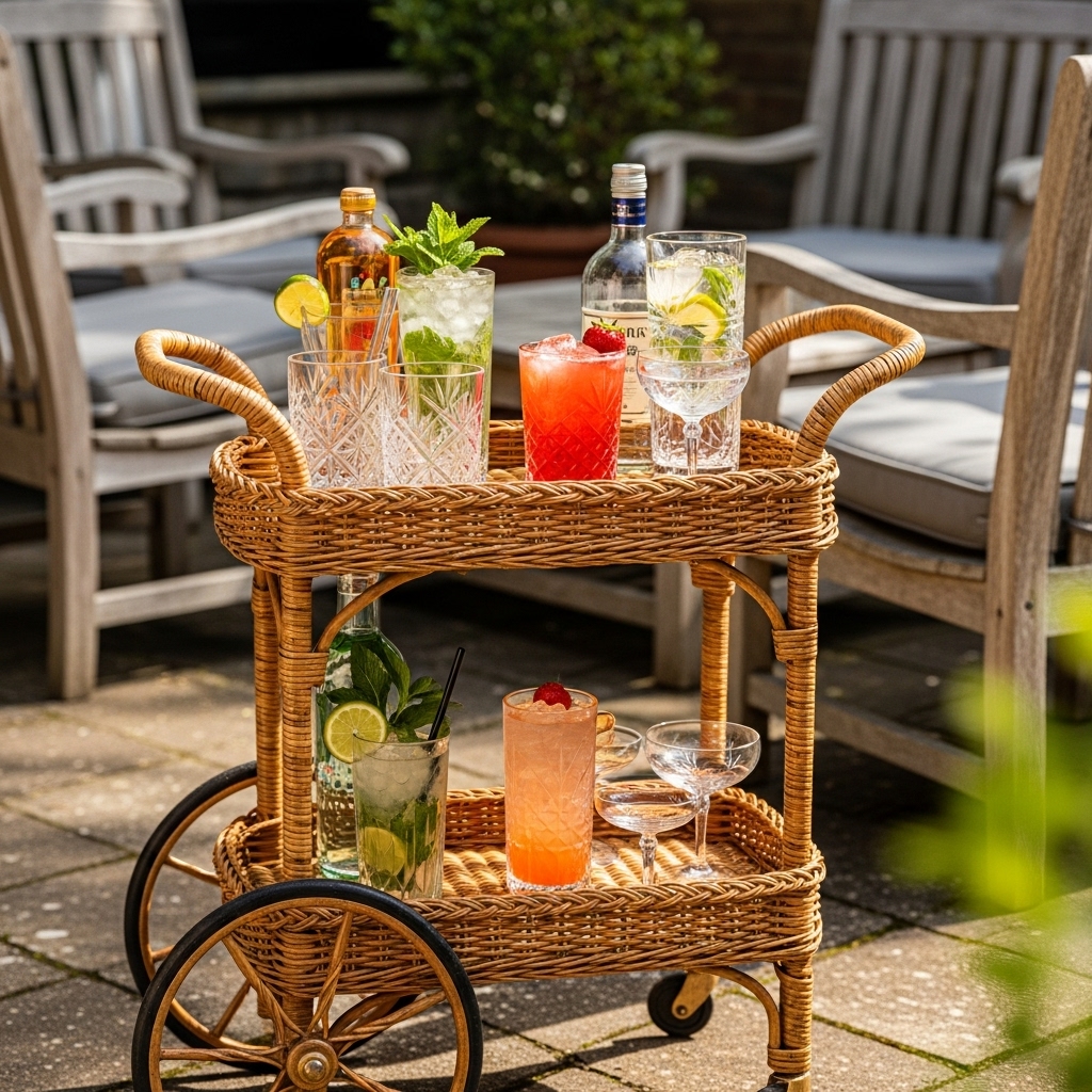 A bar cart or buffet table enhances functionality, especially for entertaining. It provides space for drinks, snacks, or grilling tools. Choose a style with wheels so you can move it easily as needed.