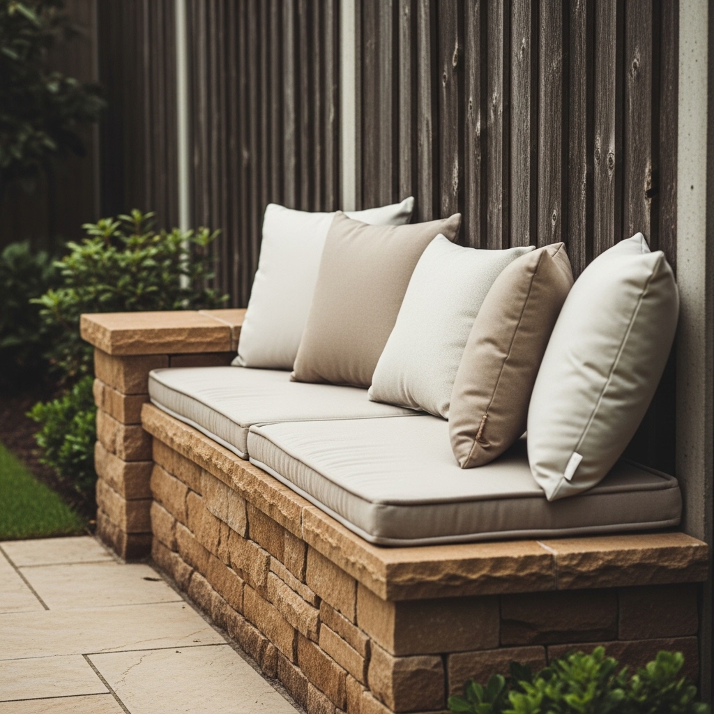 If you want permanent seating with a seamless look, built-in benches or seating walls are ideal. Add cushions and pillows to boost comfort. These are especially useful along fences, walls, or garden edges.