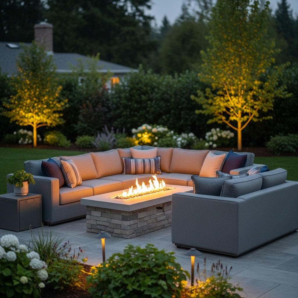 Fire pits serve as a natural gathering point and elevate your patio’s design. Choose a style that fits your layout—round, square, or built-in. Surround it with armchairs, low seating, or a sectional.