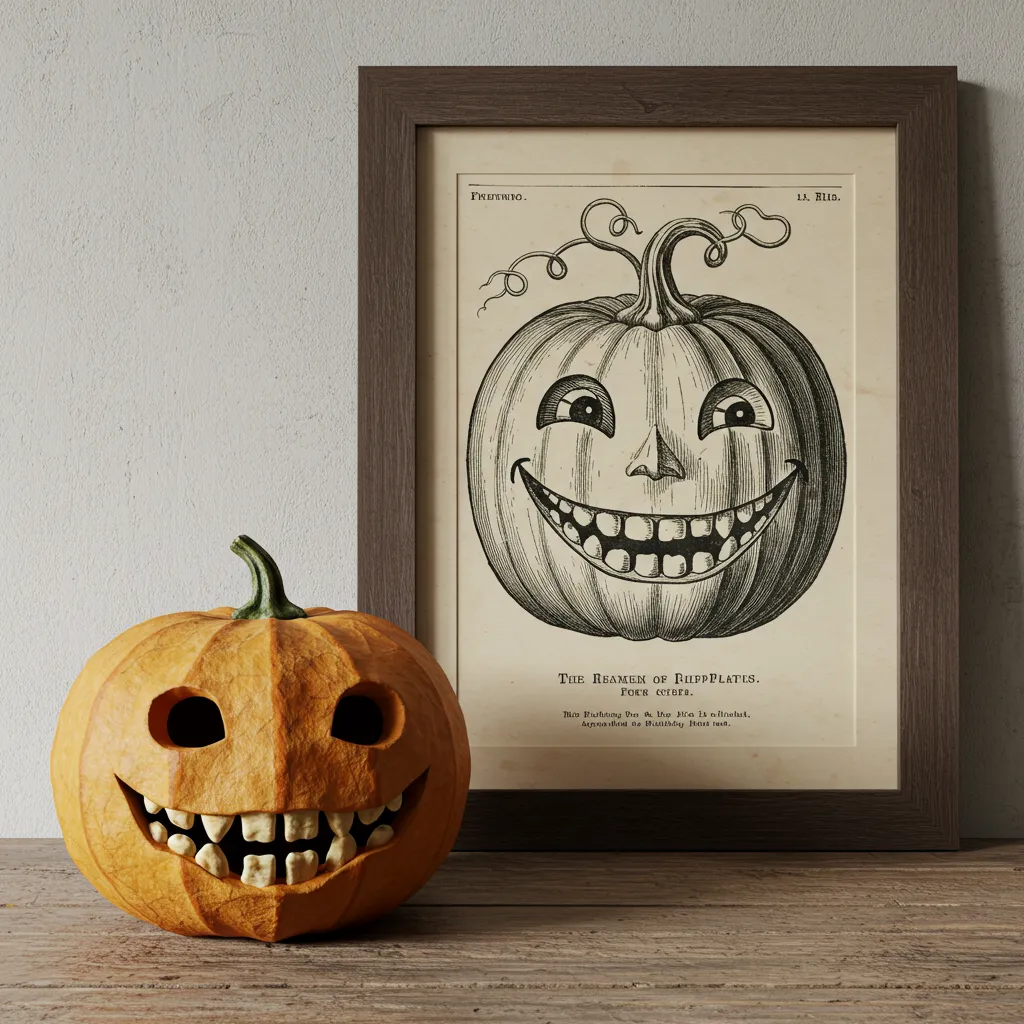 Vintage pumpkin art stands out with its cheerful yet slightly mischievous expressions. Old paper mâché pumpkin faces and illustrations often had exaggerated eyes, toothy grins, and warm orange tones. Using these images for posters or digital prints adds cozy retro vibes to your Halloween décor.