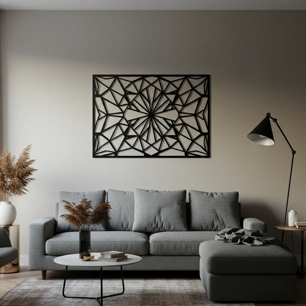 Metal wall art comes in abstract shapes, floral patterns, or geometric designs. It’s perfect for adding a sleek, modern edge to your living room without overwhelming the space.